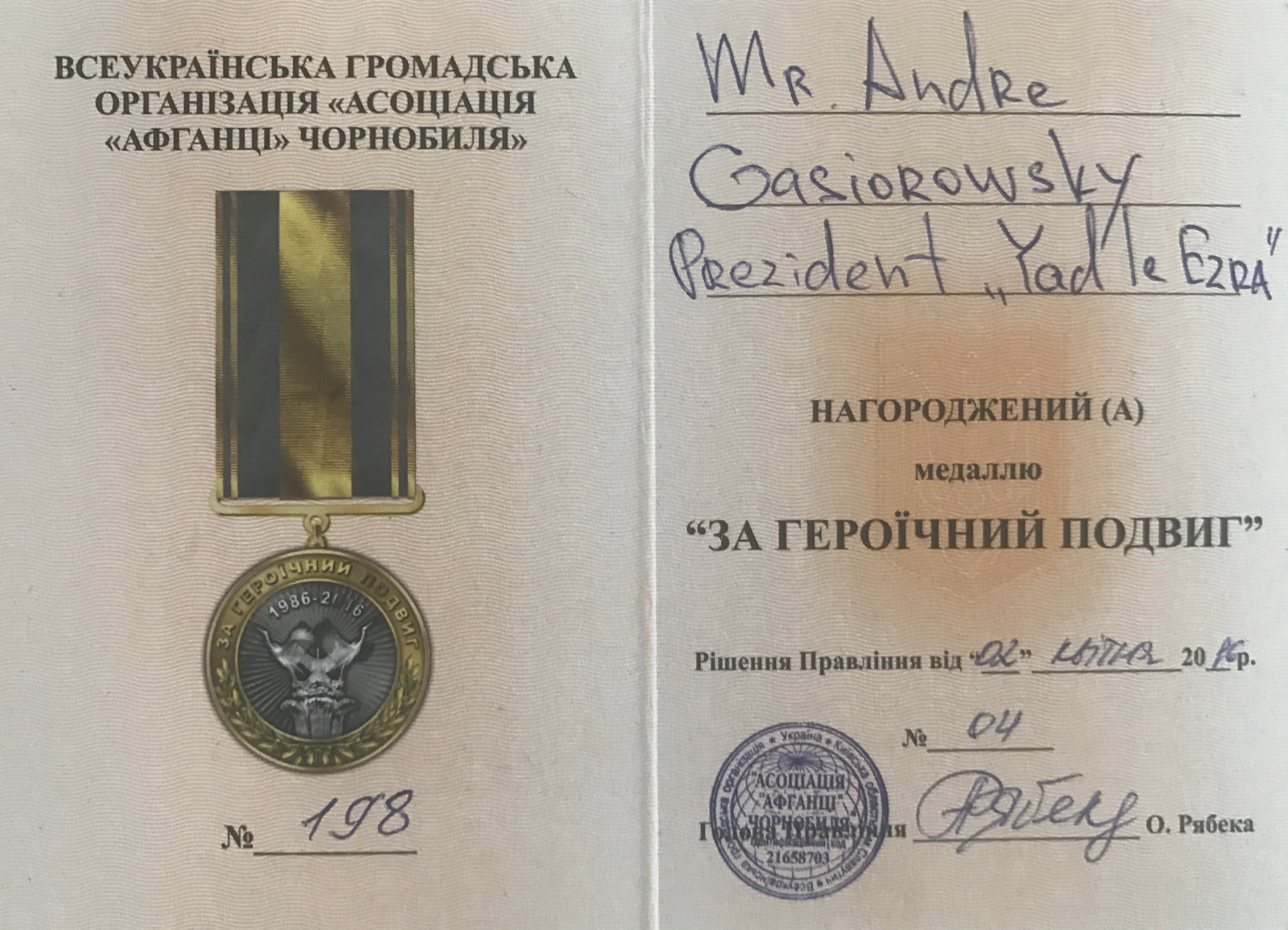 Published 04/12/2016 at 3702 × 2673 in Andre Gasiorowski: Awarded by Israeli Union of Chernobyl Disaster Liquidators ‹ Return to post Leave a Reply Cancel replyYour email address will not be published. Required fields are marked *Comment * Name Email Website Δ