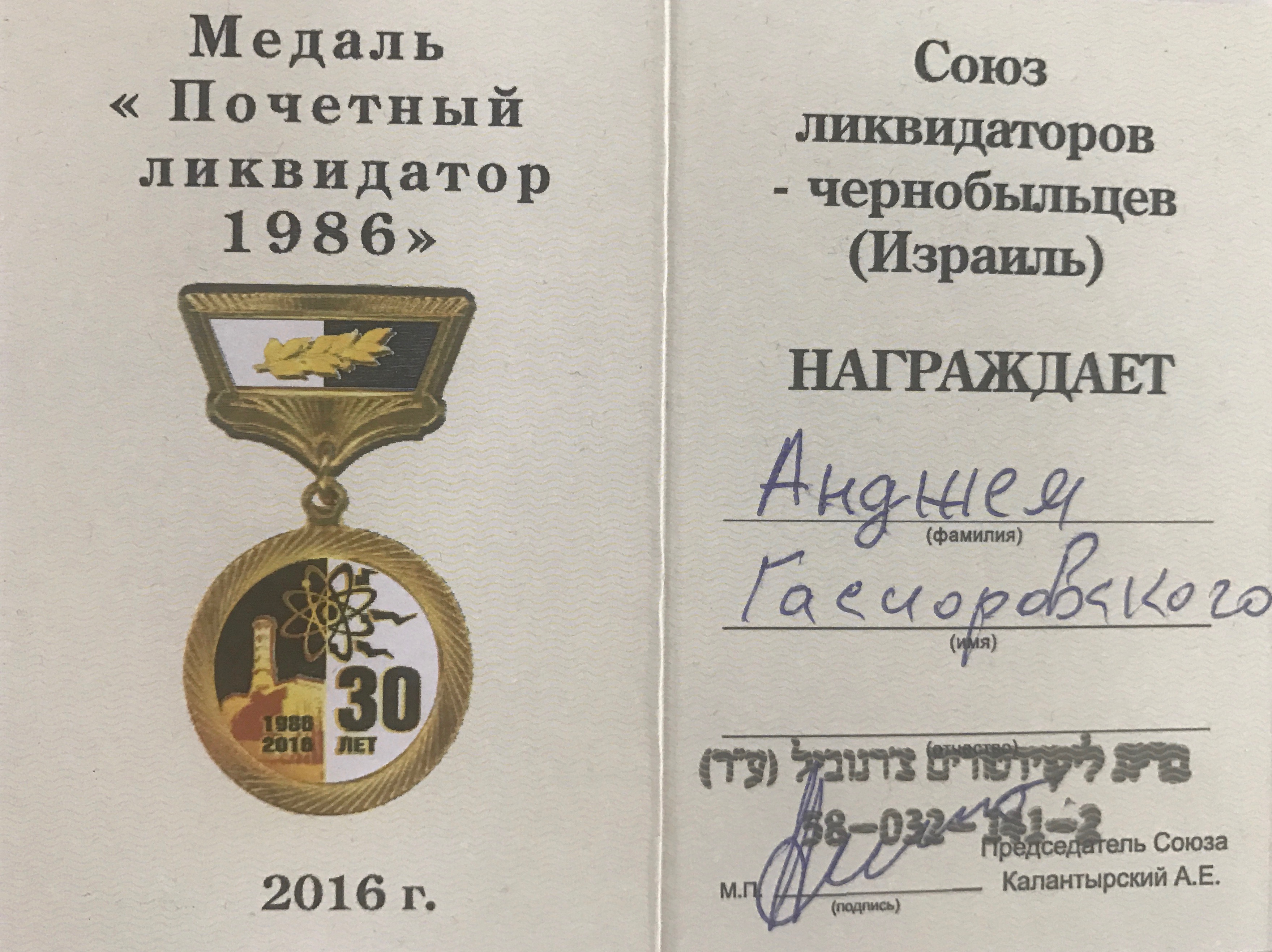 Published 04/12/2016 at 3519 × 2634 in Andre Gasiorowski: Awarded by Israeli Union of Chernobyl Disaster Liquidators ‹ Return to post Leave a Reply Cancel replyYour email address will not be published. Required fields are marked *Comment * Name Email Website Δ